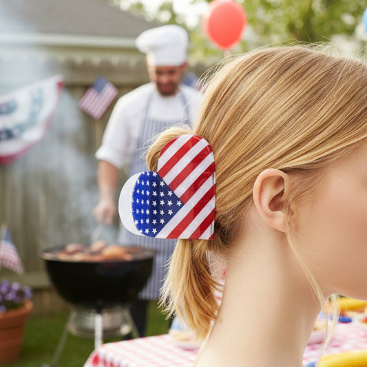 USA Flag Star & Heart Hair Claw Clips