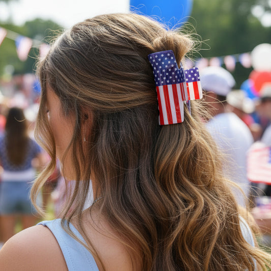 USA Flag Print Hair Claw Clips – Set of 3