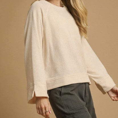 Cream Knit Crew Neck Top
