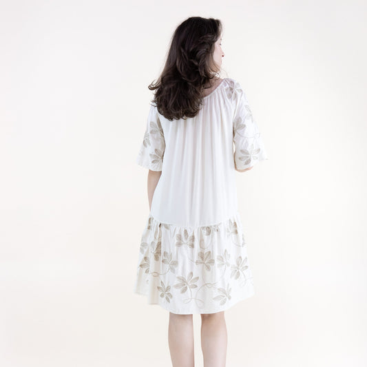 Floral Embroidered Drop Waist Mini Dress