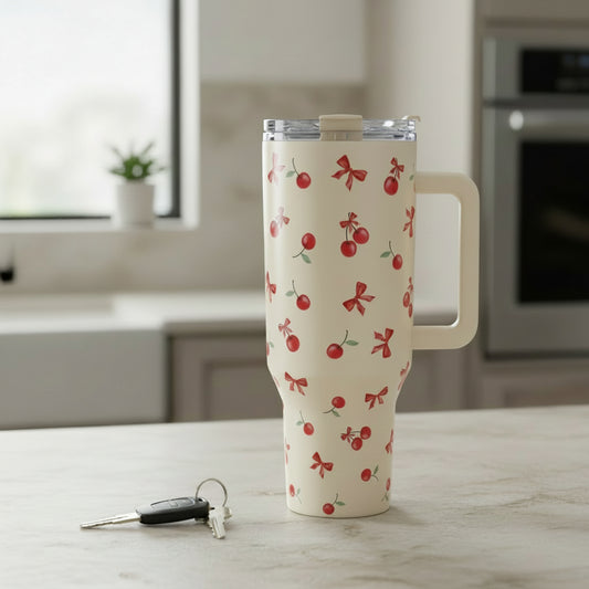 40oz Spill-Free Stainless Steel Vacuum Tumbler – Cherry Cream