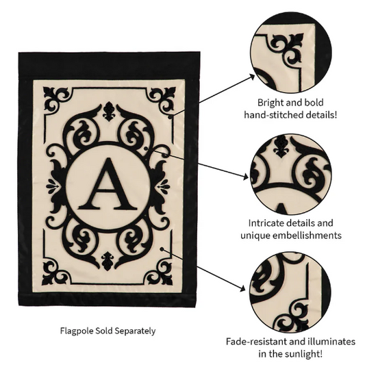 BreezeArt® Garden Flag - Black and White Check Monogram