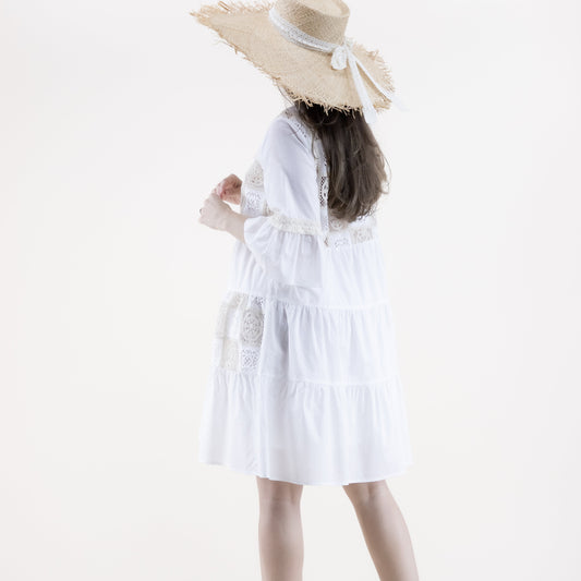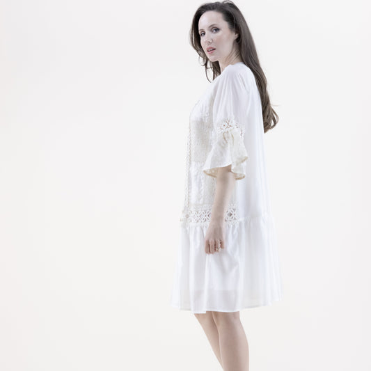 Lace Tile Trumpet Sleeve Ruffle Tier Dress
