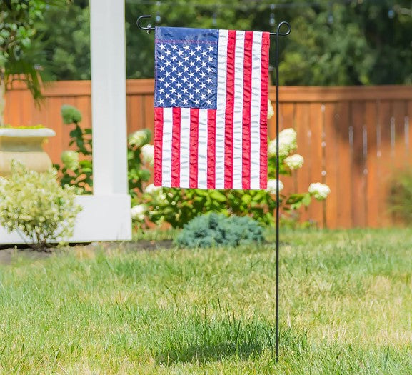 Every garden needs a flag, and every flag needs a pole. This classically-designed flag stand holds a garden-sized flag (sold separately) and is made of sturdy weather-resistant metal. With its high quality construction and durable design, we guarantee this stand will last season after season. The stand also features a convenient h-stake for easy placement anywhere in your garden.