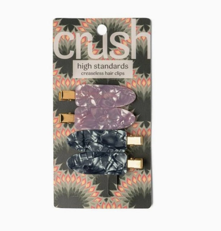 Elevate your beauty routine with these must-have creaseless hair clips. The Crush High Standards collection features four premium acrylic clips in two complementary colors, each engineered with delicately designed teeth that grip without creasing or denting your hair. Whether you're applying makeup, perfecting your skincare regimen, or styling throughout the day, these clips deliver the hold you need without the damage. Say goodbye to unsightly hair marks and hello to flawless results every time.