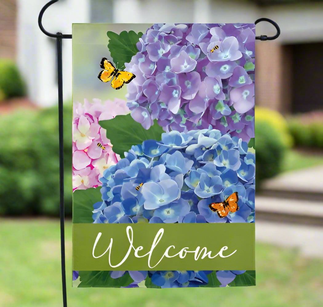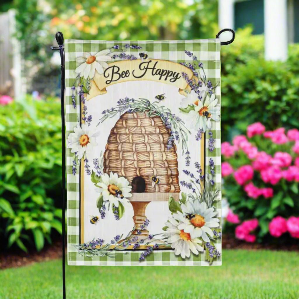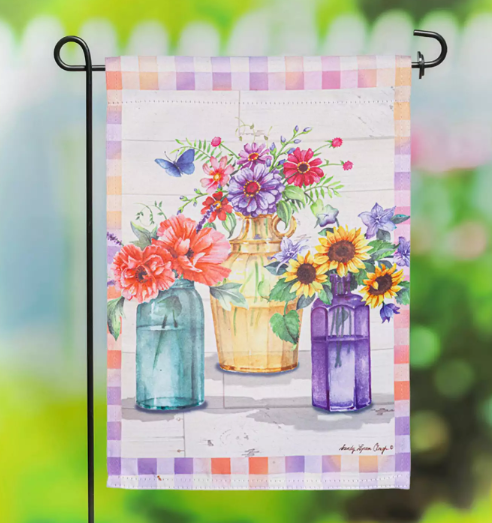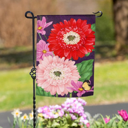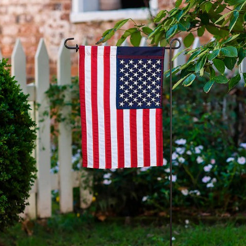 Measures 12.5" x 18" and fits standard garden flag poles and stands, sold separately.