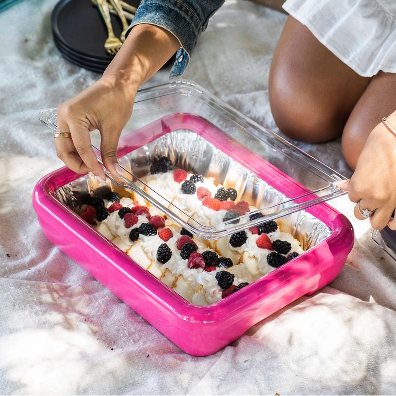 Fancy Panz are stackable and sturdy for ease while traveling. No more spilled food - you can't say that about your foil pans!