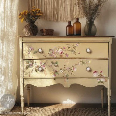 This transfer works beautifully on drawer fronts, trays, and accent pieces—perfect for romantic, French-inspired DIYs or garden-style home décor.
